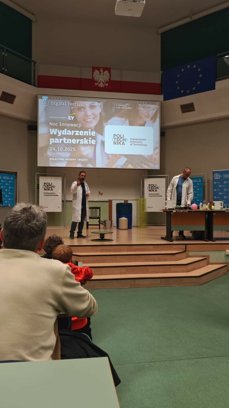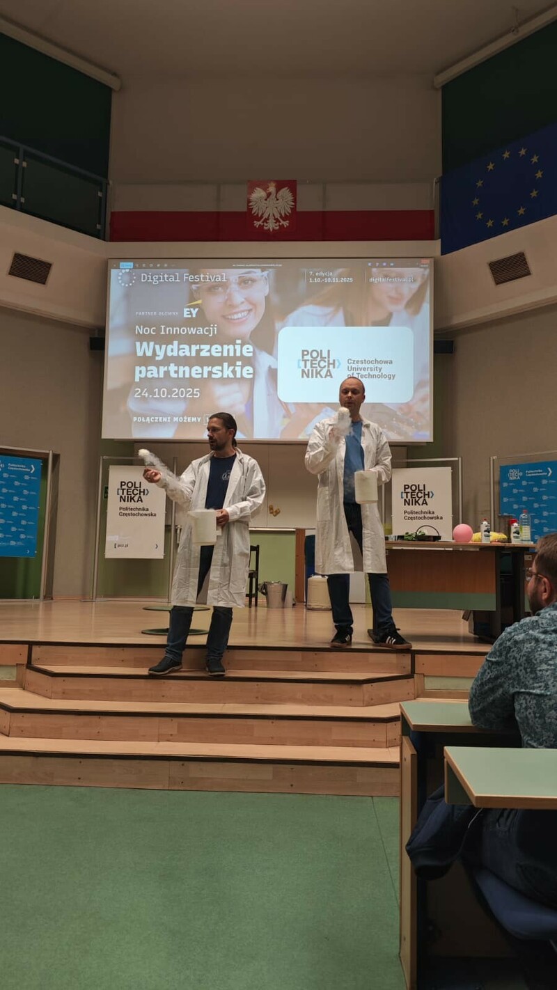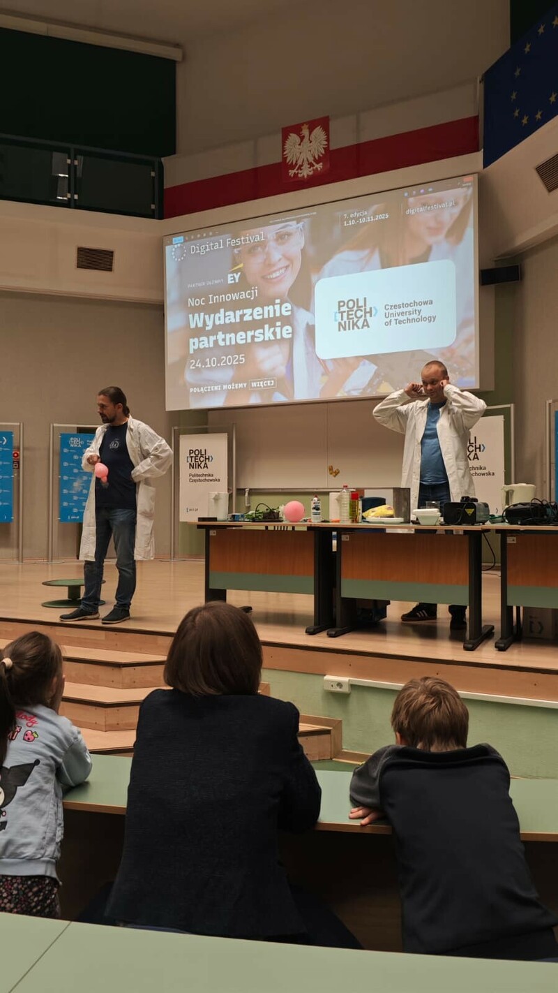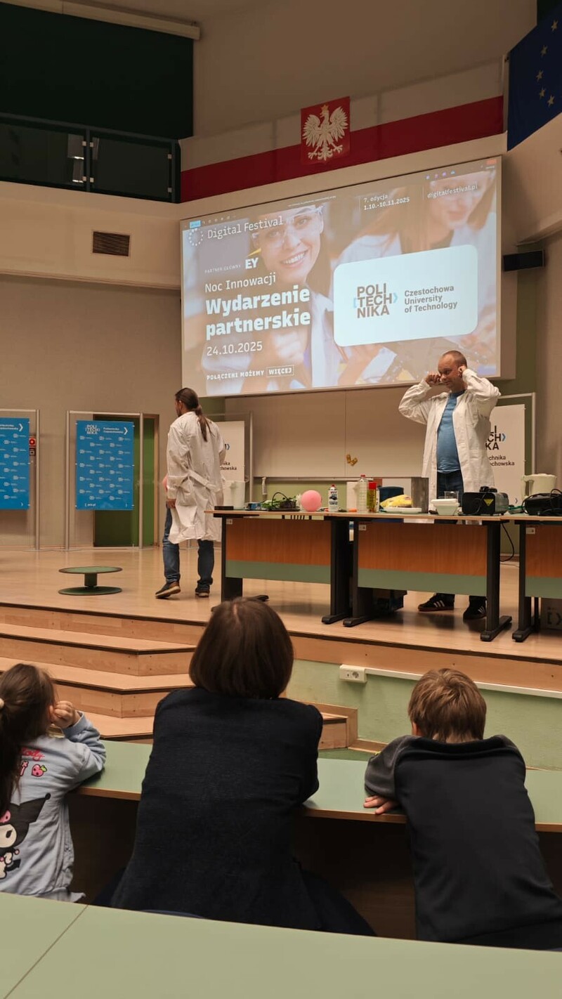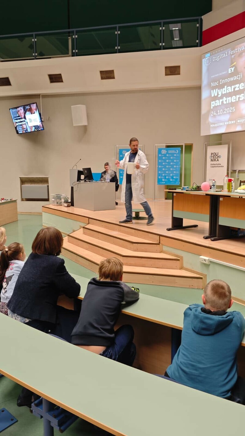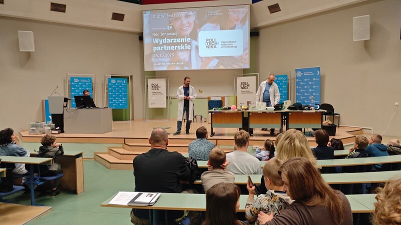 24 października 2025 roku Politechnika Częstochowska już po raz trzeci dołączyła do ogólnopolskiego wydarzenia Noc Innowacji, które jest częścią Digital Festival – największej inicjatywy promującej nowoczesne technologie i transformację cyfrową w Polsce. Tegoroczna edycja odbyła się w Auli Politechniki Częstochowskiej przy al. Armii Krajowej 19 w godzinach od 18:00 do 21:00 i przyciągnęła licznych pasjonatów nauki, studentów, uczniów szkół średnich oraz mieszkańców regionu zainteresowanych światem nowych technologii i współczesnych innowacji.