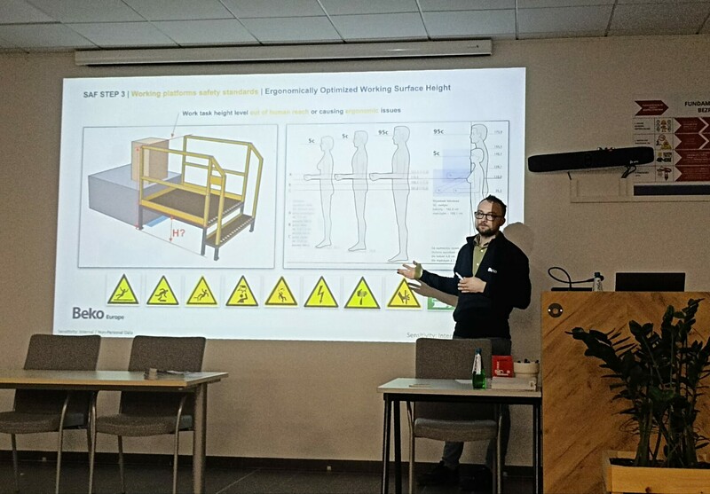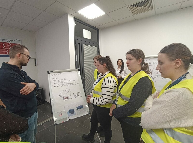 Rozbudowaną część programu stanowiło specjalistyczne szkolenie BHP dotyczące zasad projektowania stanowisk pracy, w tym właściwego doboru i organizacji stałych środków dostępu do maszyn. Studenci poznali obowiązujące wymagania, dobre praktyki stosowane w zakładach produkcyjnych oraz przykłady najczęstszych nieprawidłowości. Dzięki temu mogli zrozumieć, jak projektowanie przestrzeni pracy wpływa zarówno na bezpieczeństwo, jak i efektywność działań pracowników.